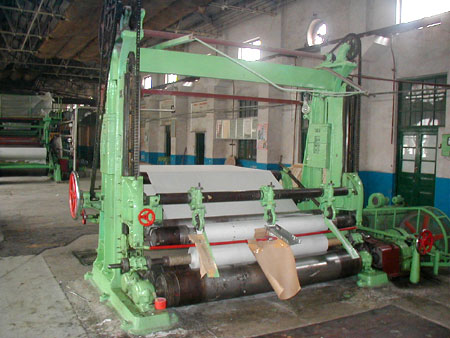 高速復(fù)卷機,用于將紙機上初步卷成的原紙卷進行縱切,復(fù)卷成符合寬度和緊度要求的成品紙卷。